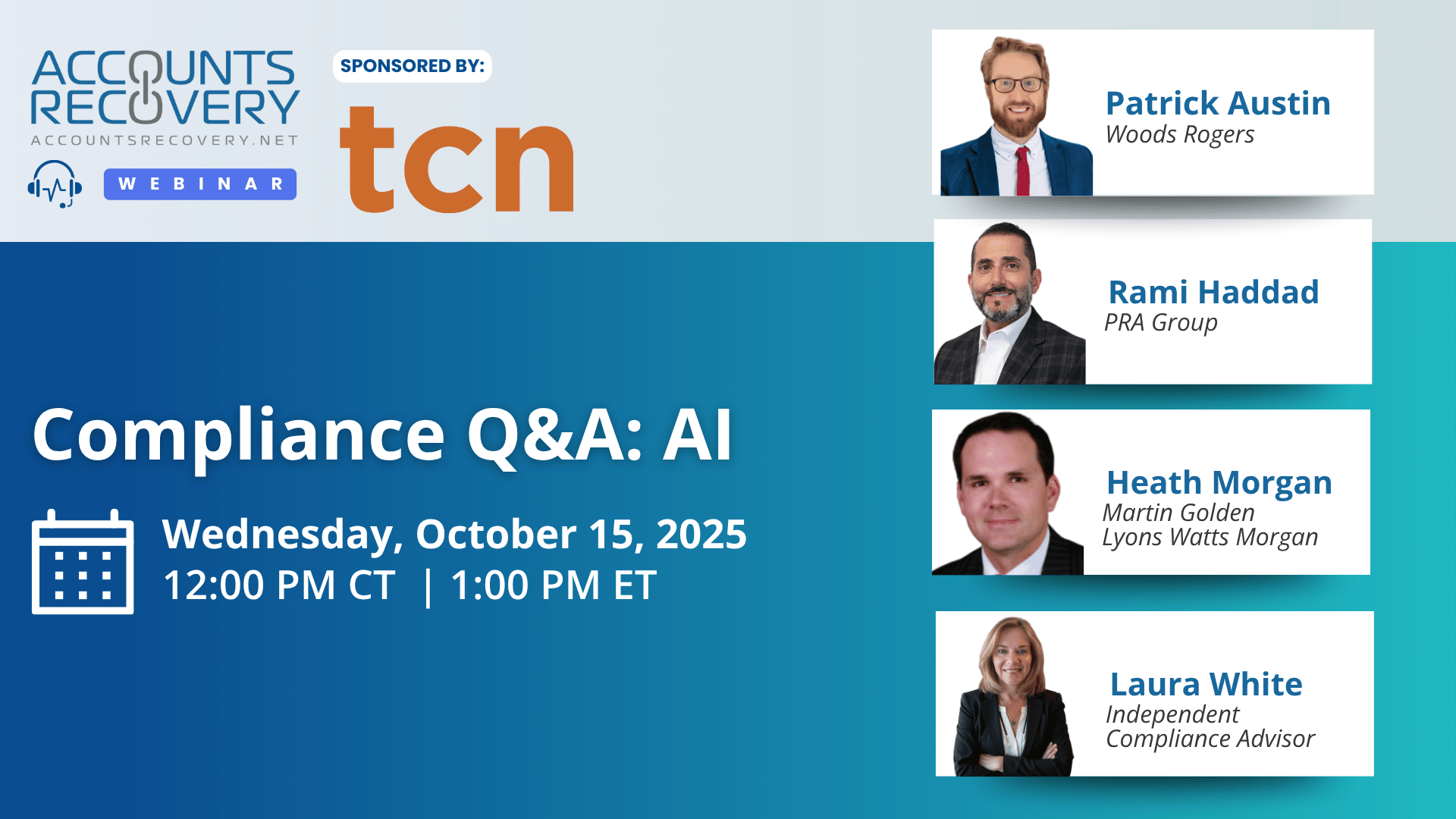 As artificial intelligence continues to reshape the credit and collections industry, compliance leaders are under pressure to balance innovation with regulatory responsibility. In the recent Compliance Q&A: AI webinar, moderated by Leslie Bender, experts Patrick Austin (Woods Rogers), Rami Haddad (PRA Group), Laura White, and Heath Morgan explored how agencies can adopt AI safely while staying compliant.
