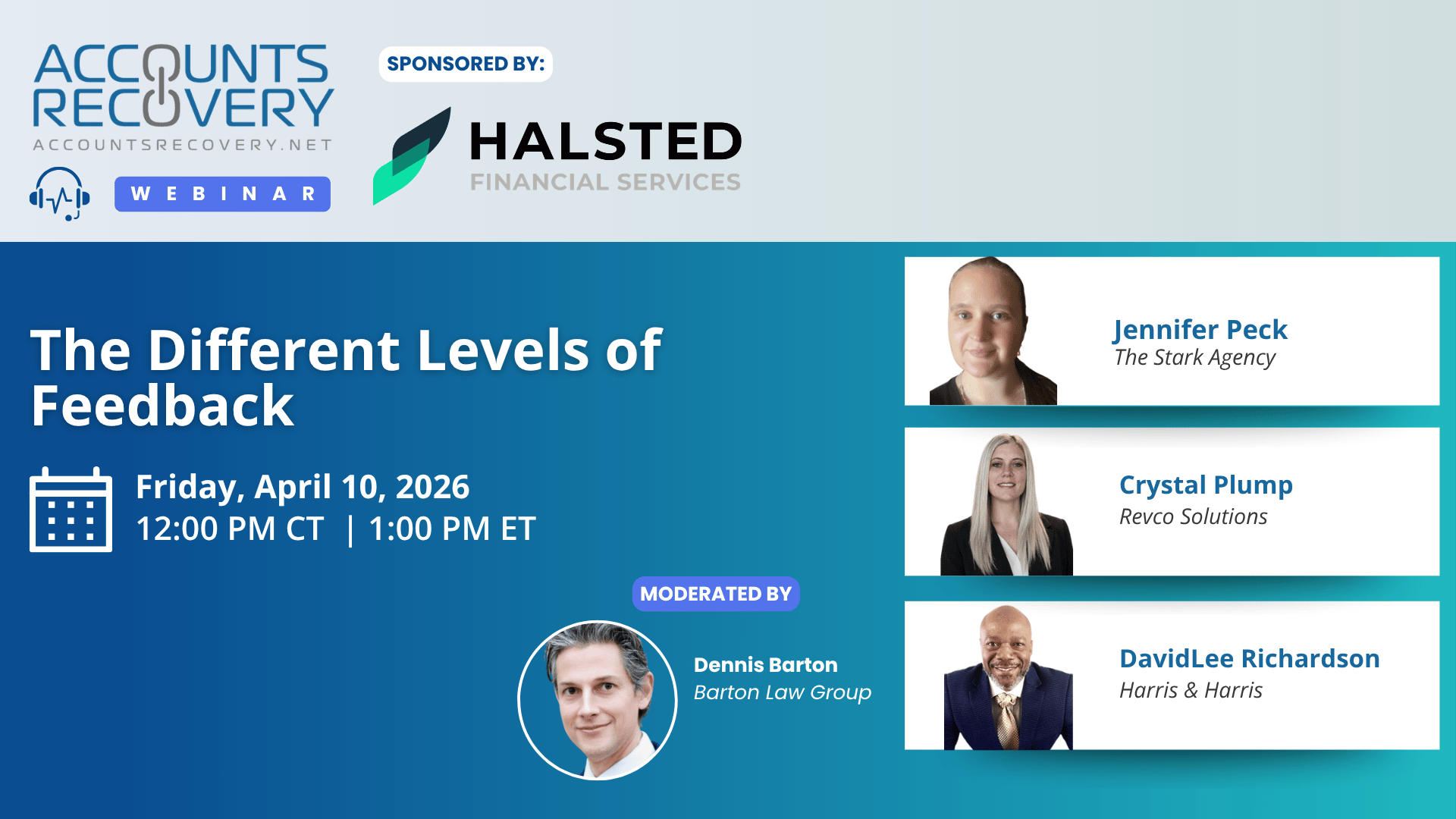 In this webinar, sponsored by Halsted Financial, a panel of industry experts will explore the different levels of feedback that drive success across credit and collection operations.